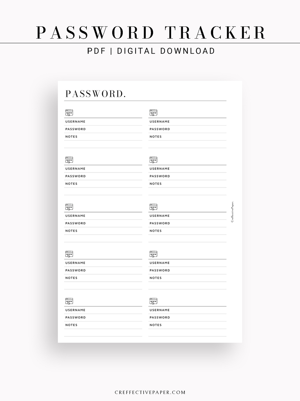 ● If you often forget or get confused with the password, this is a perfect choice for you. This printable password tracker helps you keep your login information(username, password, etc). Just write it down on this.