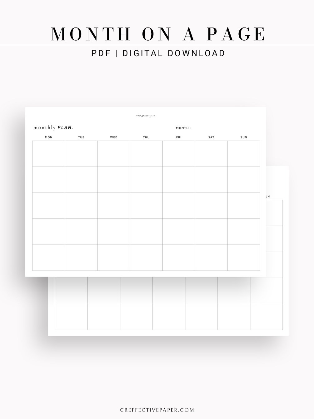 M111 | Horizontal Monthly Planner Printable Inserts, Month on a Page