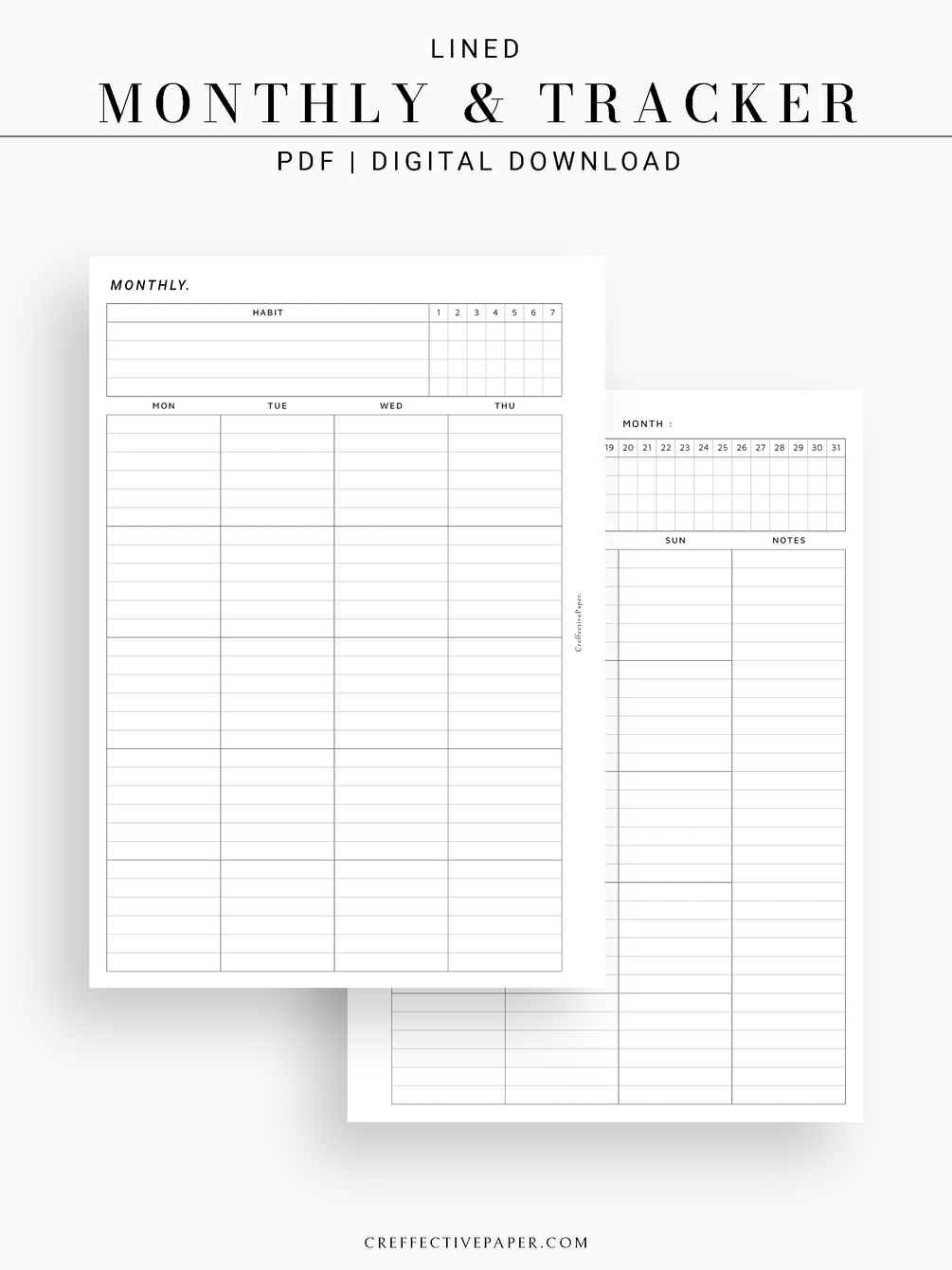 - Monthly + Tracker Planner_Lined_Monday & Sunday Start | M106_L
