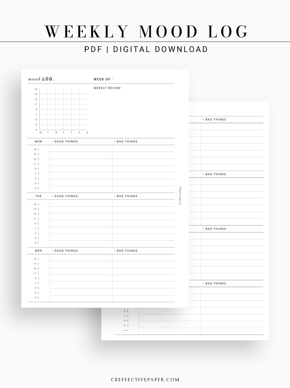 ● This weekly mood log enables track factors that change your feelings into good and bad, so It helps you to control your feelings easier.